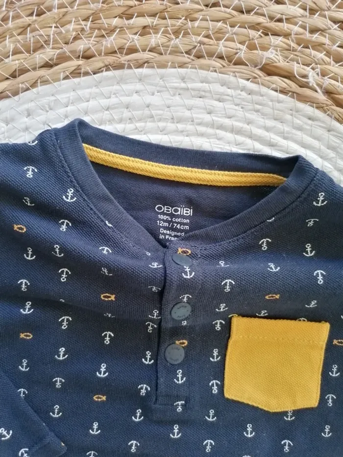 🧒🏻 Tee-shirt manches longues bleu marine à motifs 🧒🏻 Obaïbi : 12 mois