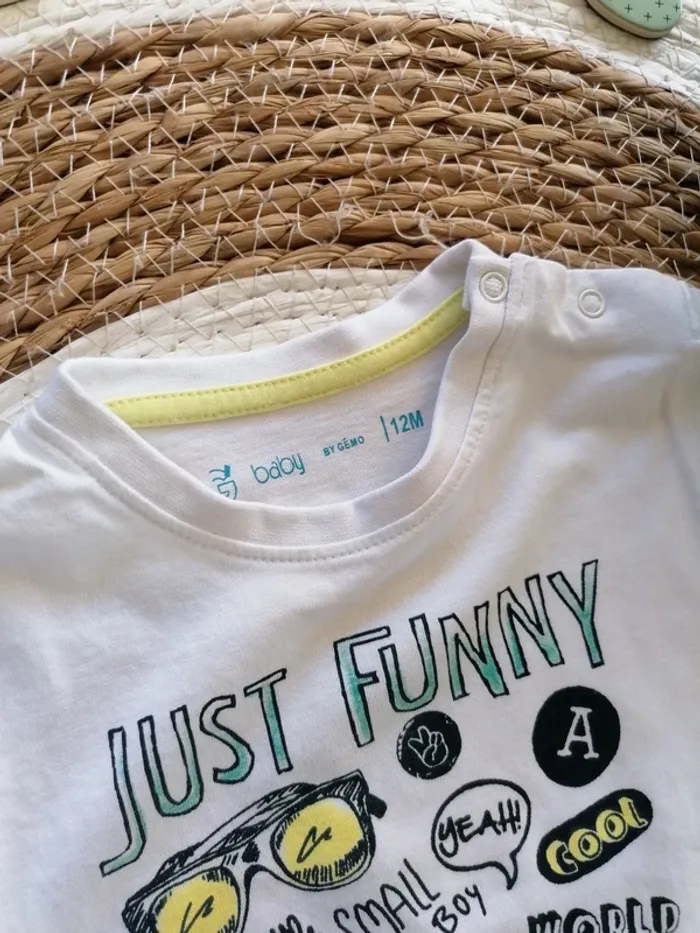 🧒🏻 Tee-shirt manches longues blanc à motifs 🧒🏻 Baby by Gémo : 12 mois