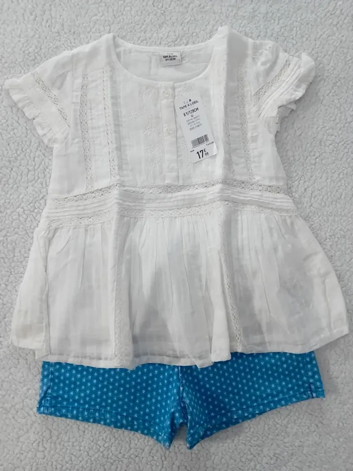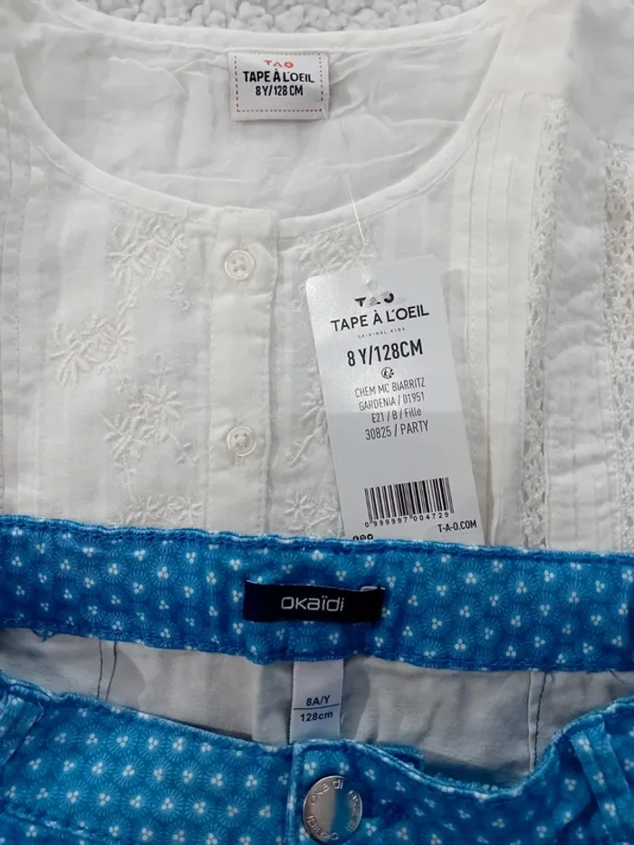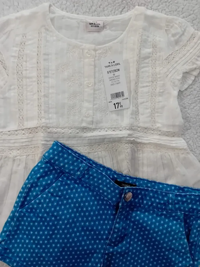 Ensemble 8 ans blouse blanche tape à l'oeil neuf short Okaïdi