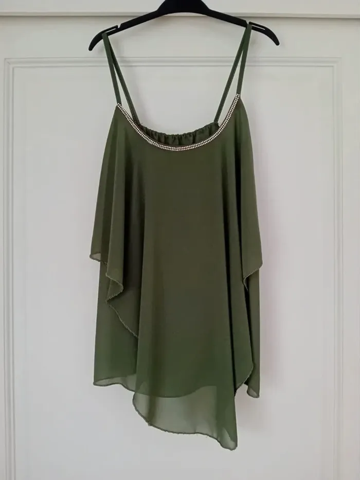 Tunique blouse t-shirt volant kaki taille unique - photo numéro 1