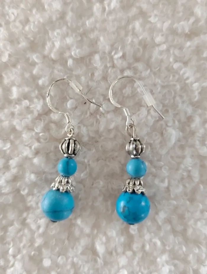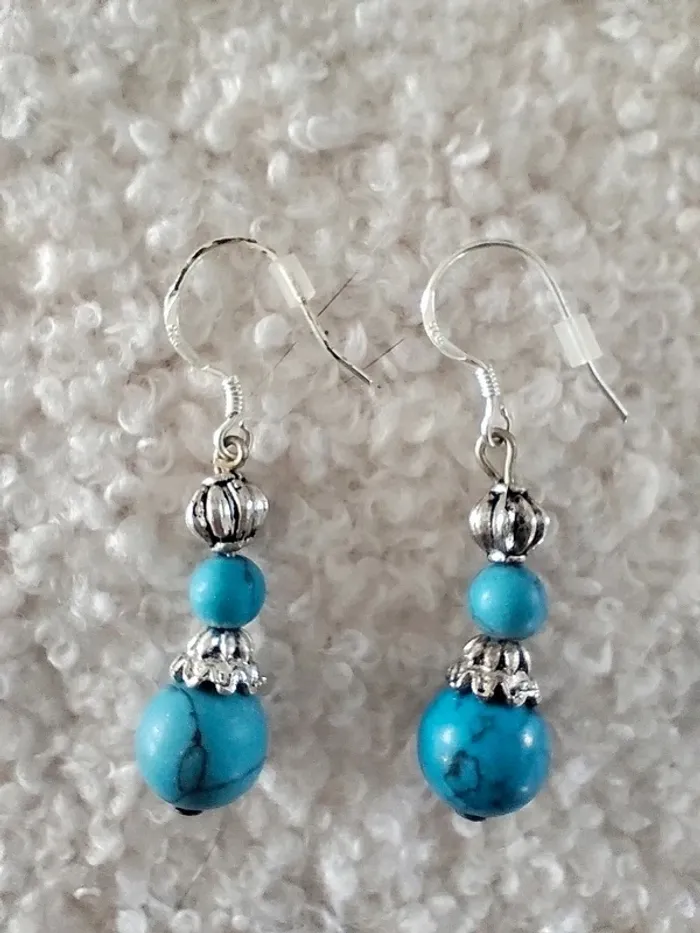 Boucles d'oreilles en plaqué argent boules bleu - photo numéro 1