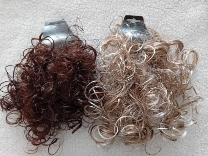#sev8059accessoiresfemme Postiches en chouchou châtain + blond neuf (milieu) Pince de gauche et Postiche à droite d'occasion que je donne voir mes autres ventes pour regrouper