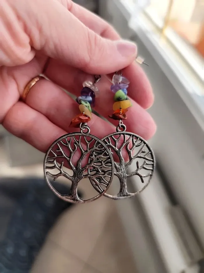 Parure bijoux boucles d'oreilles arbre de vie pendentif en pierre 7 chakras - photo numéro 1
