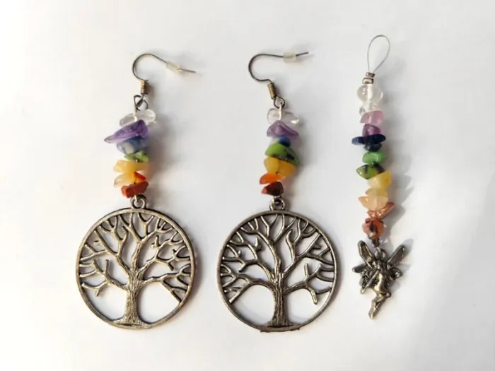 Parure bijoux boucles d'oreilles arbre de vie pendentif en pierre 7 chakras - photo numéro 3