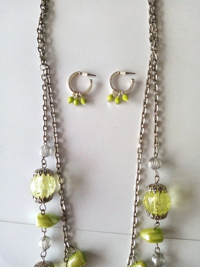 Parure bijoux collier boucles d'oreilles perles vertes neuf - photo numéro 2