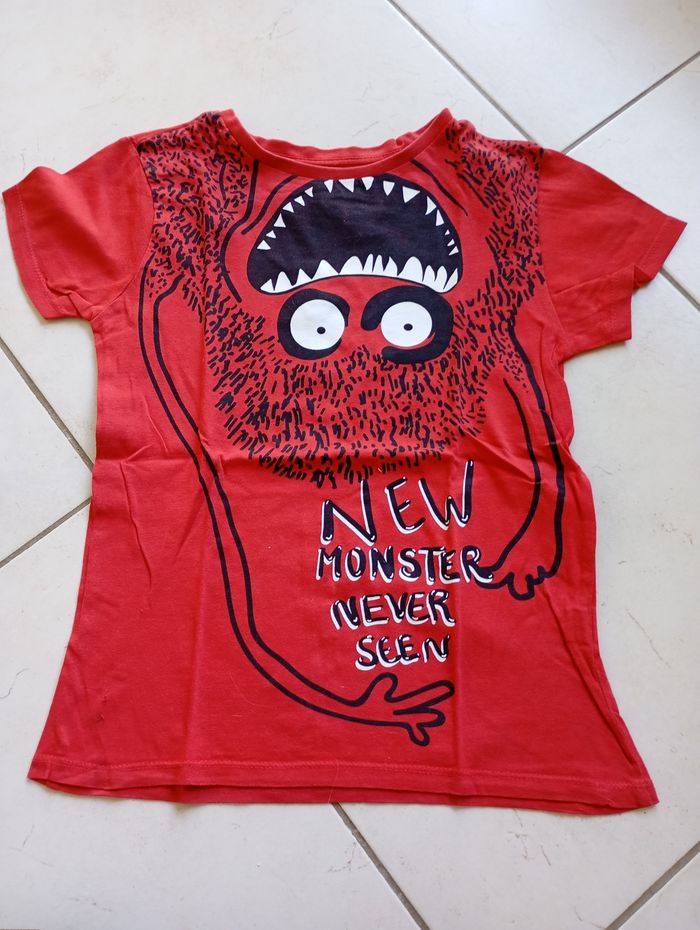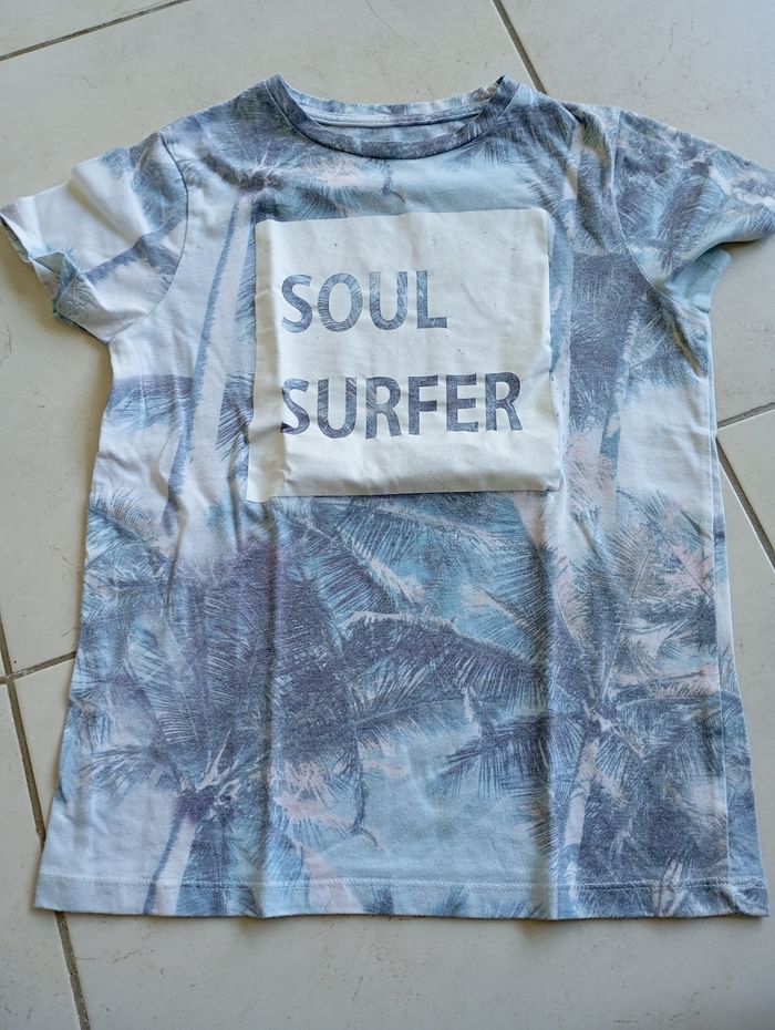 Lot de 4 tee shirt manche courte taille 8 ans Un car's marque disney Un soul surfer Un monstre rouge Un H&M un rayé blanc et bleu marin Bcp d'autres habits en 8 ans tee shirt sweat veste chemise......