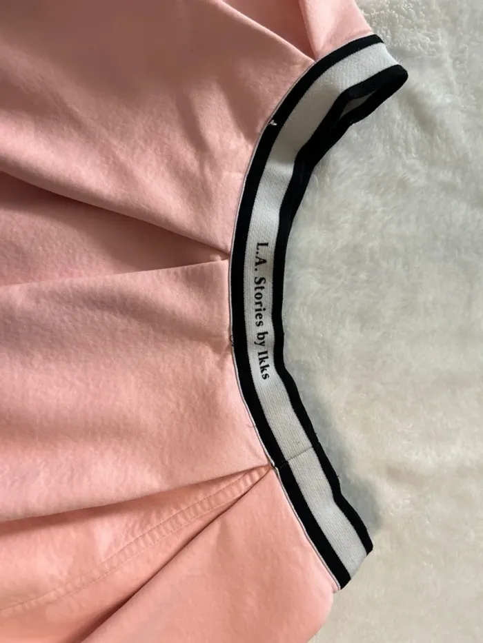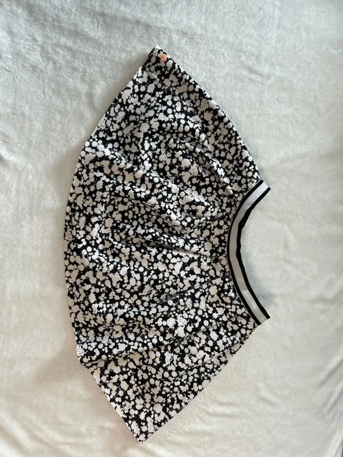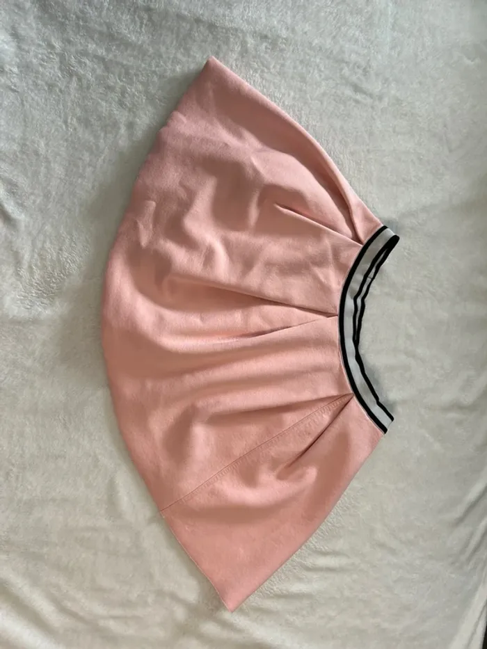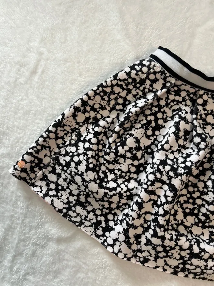 Jupe courte et réversible IKKS Assez epaisse Un coté rose uni et un coté moucheté noir/blanc Portée 1 fois Taille S (achetée pour une ado mais lui est trop grande) #poupyfemme