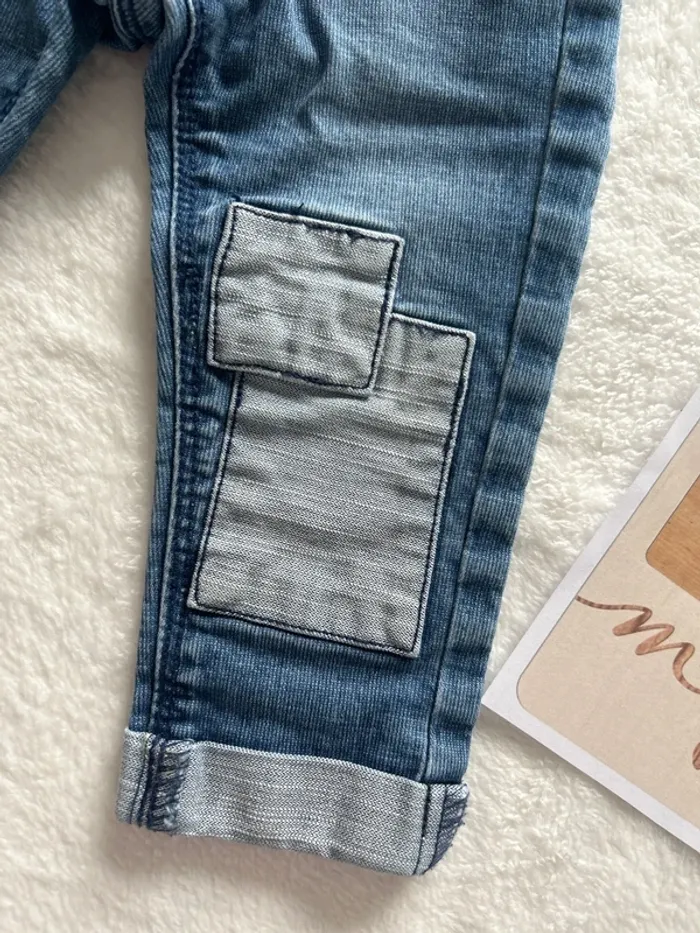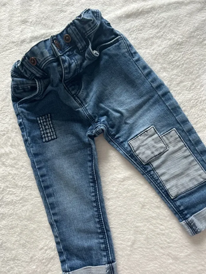 Tres beau jean patchwork Elastique de reglage a la taille #poupy12mois