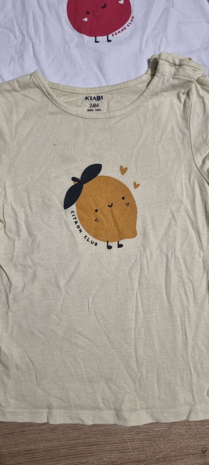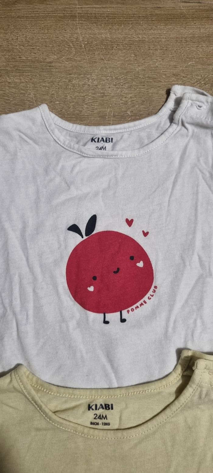 Lot de 2 t-shirts à manches courtes Kiabi taille 24 mois Bon état (petite tâche sur le jaune, voir 2ème photo)
