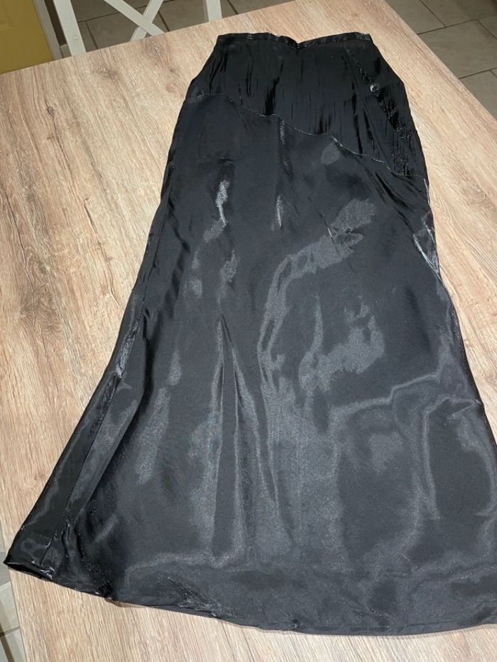 Jupe longue Etam. Joli tissu noir moiré effet brillant. Idéale pour les fêtes. Doublée jupon 100% polyester. Excellent état. Fermeture éclair sur le côté gauche.