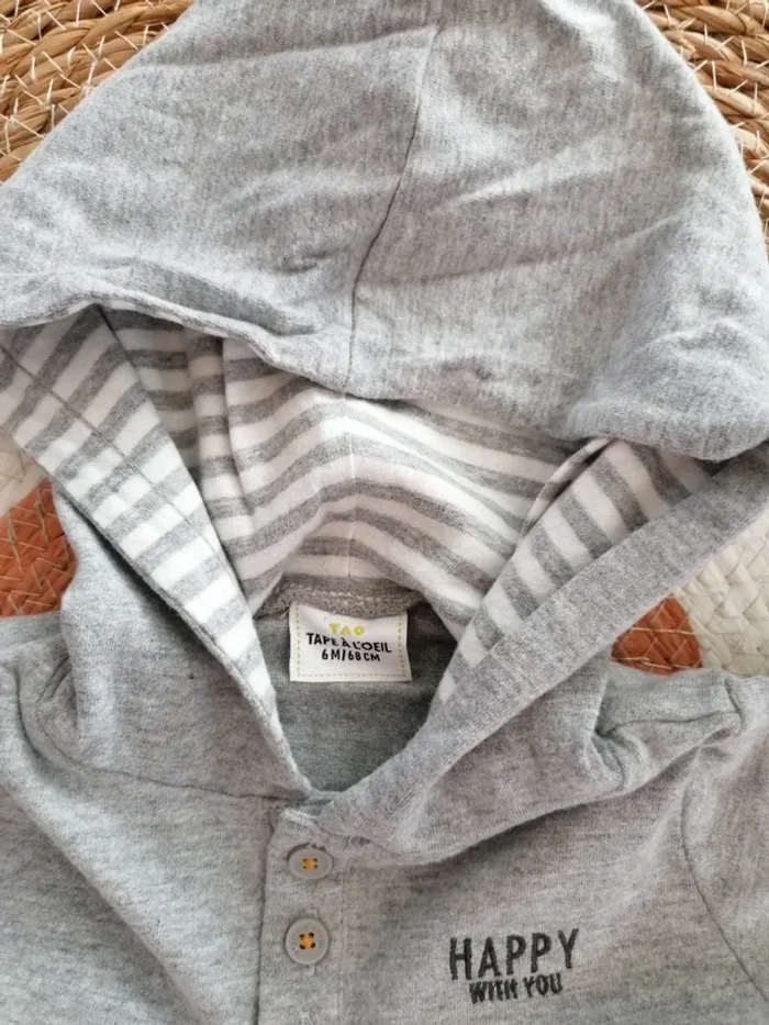 🧒🏻 Sweat gris à capuche 🧒🏻 Tape à l'oeil : 6 mois