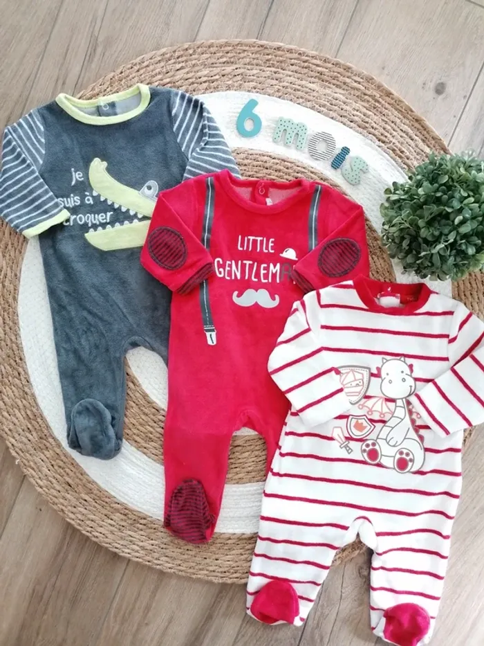 Lot de trois pyjamas en velours - 6 mois - photo numéro 1