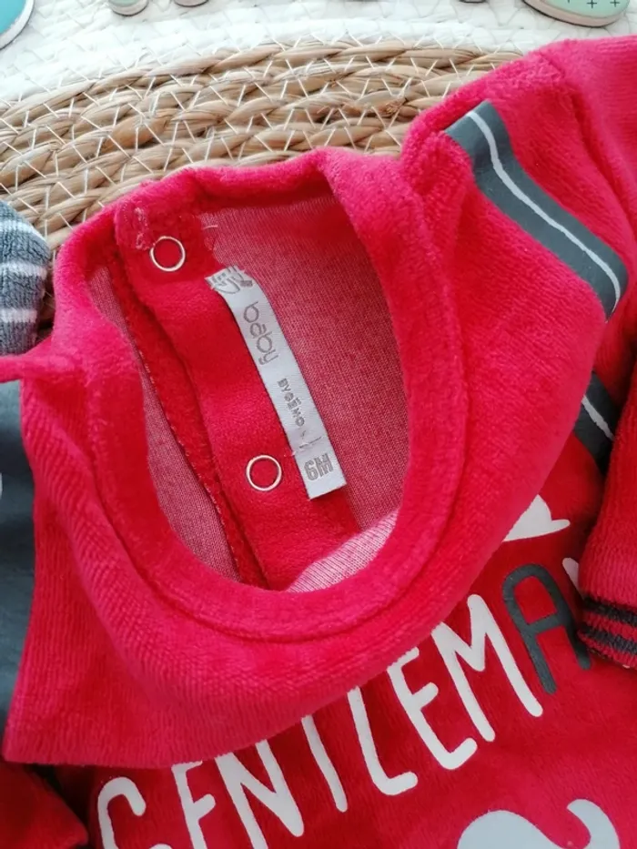 🧒🏻 Pyjamas rouge & gris - Gémo - 6 mois 🧒🏻 Pyjama à rayures - Tissaia - 6 mois