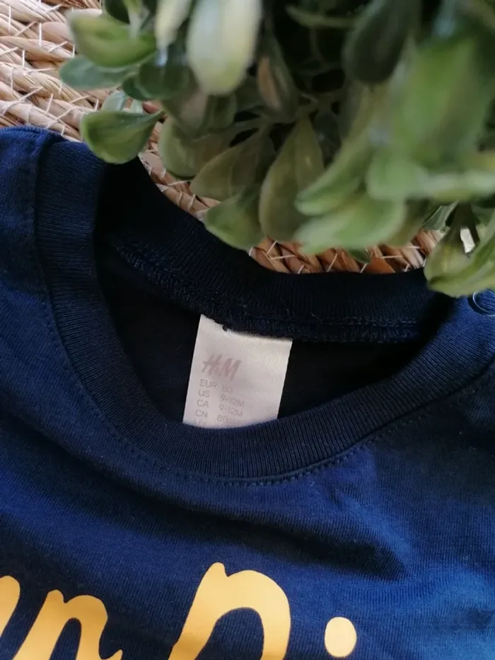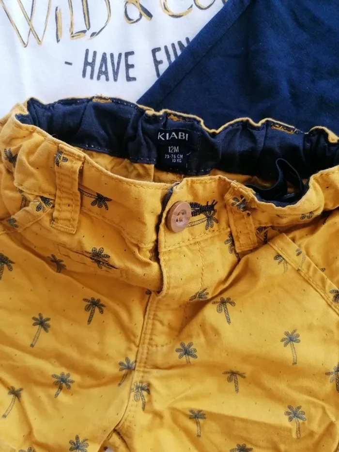 🧒🏻 Tee-shirt manches courtes bleu marine - H&M 9/12 mois 80cm - Neuf, jamais porté 🧒🏻 Short moutarde à motifs bleu marine - Kiabi - 12 mois - Comme neuf