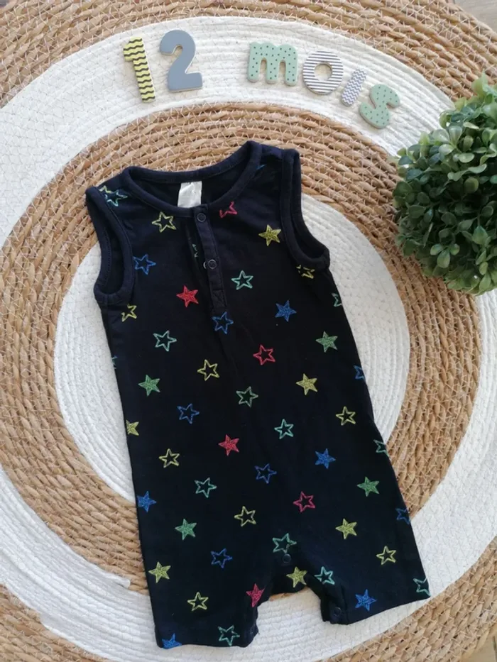 Barboteuse/Combishort bleu marine - H&M - Taille 80 - photo numéro 1