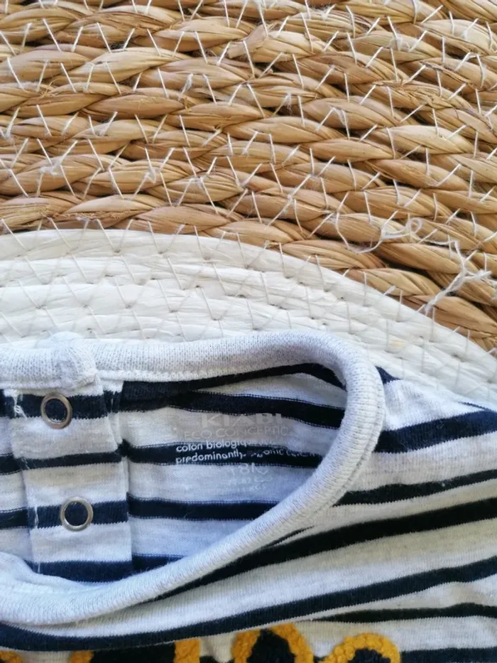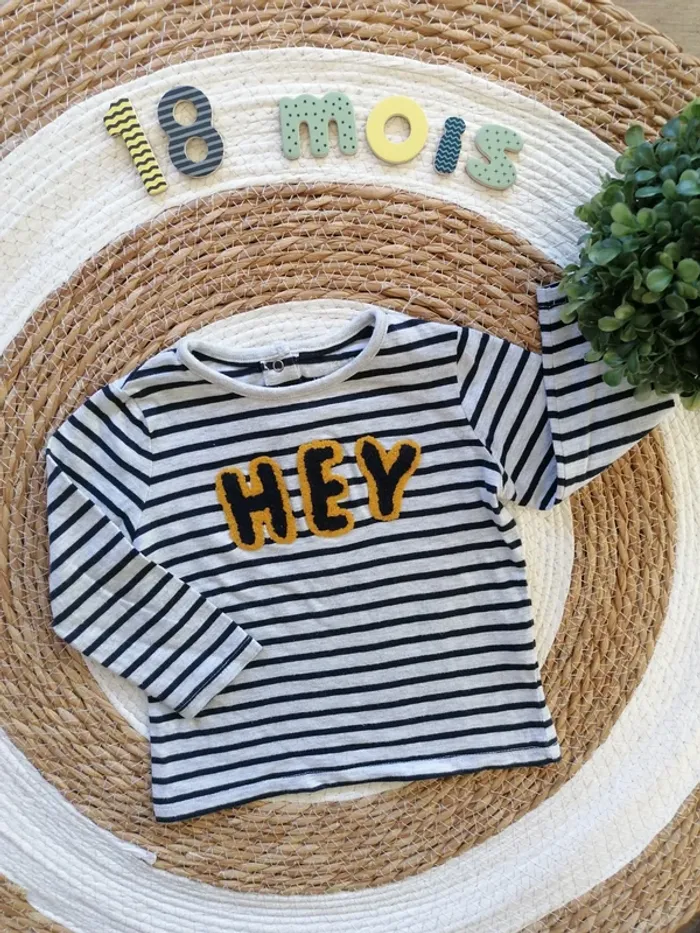 🧒🏻 Tee-shirt manches longues gris clair, à rayures bleu marine 🧒🏻 Kiabi : 18 mois