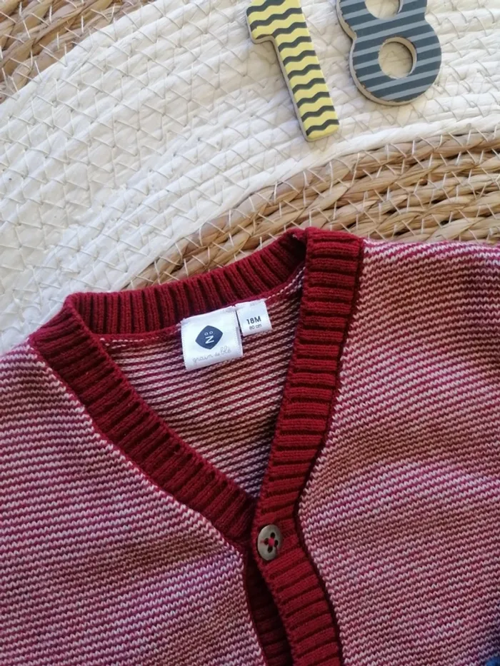🧒🏻 Gilet rouge/bordeaux à fines rayures 🧒🏻 Gilet bleu à fines rayures 🧒🏻 Z / Grain de blé : 18 mois 🧒🏻 Possibilité de vendre séparément