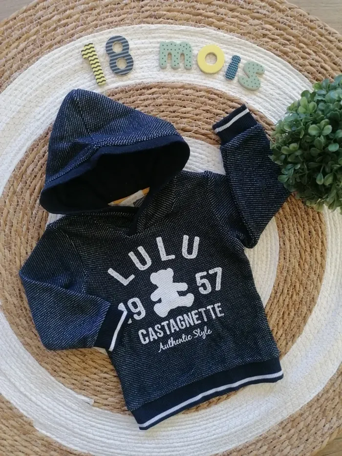 🧒🏻 Sweat à capuche bleu marine 🧒🏻 Lulu Castagnette : 18 mois