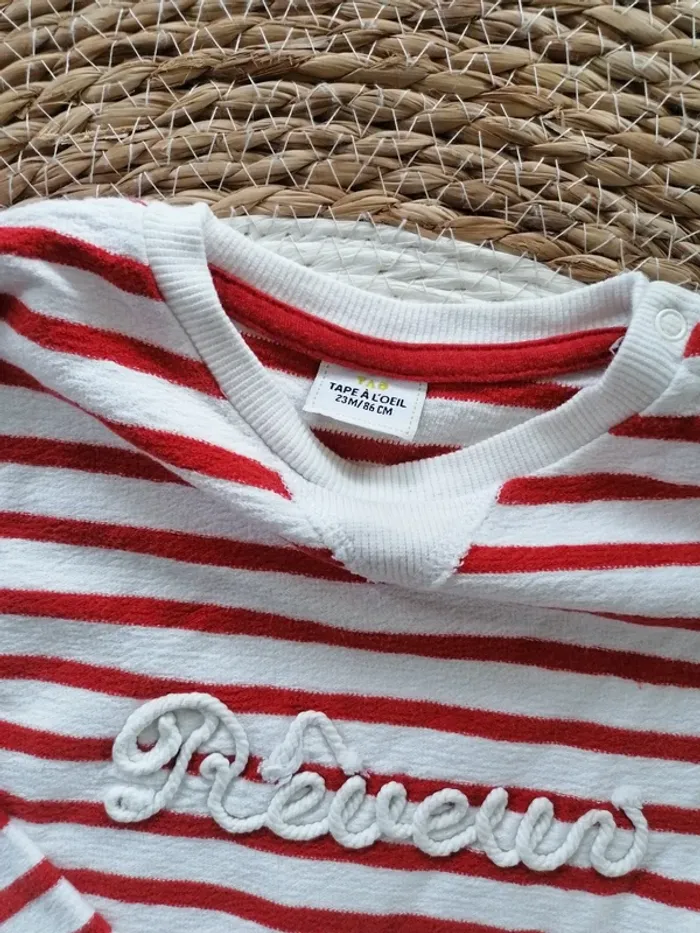 🧒🏻 Tee-shirt épais à rayures 🧒🏻 Tape à l'oeil : 23 mois 🧒🏻 Un fil à été tiré sur une manche (photo 3)