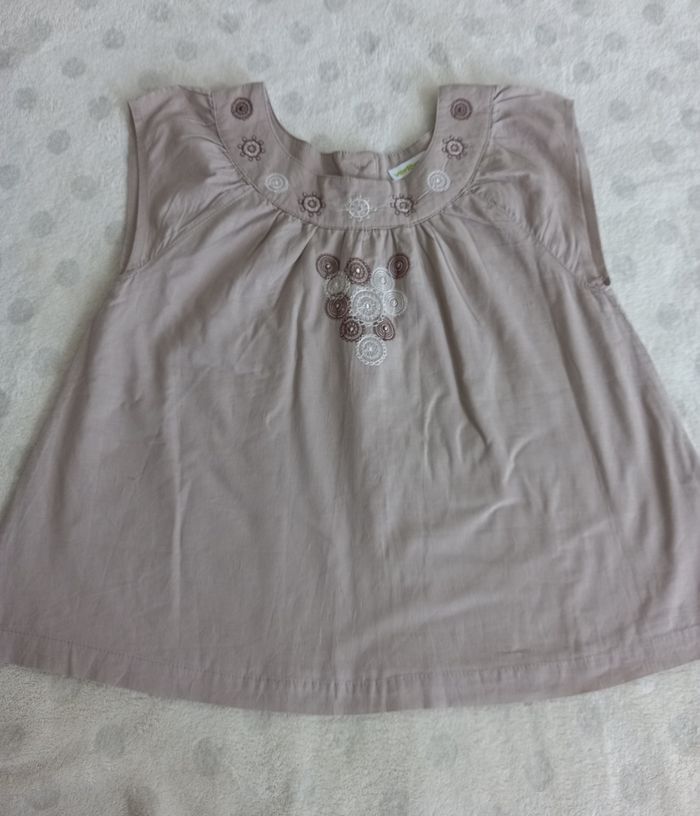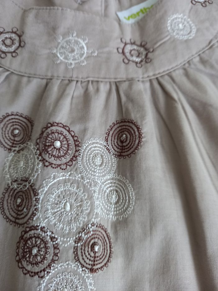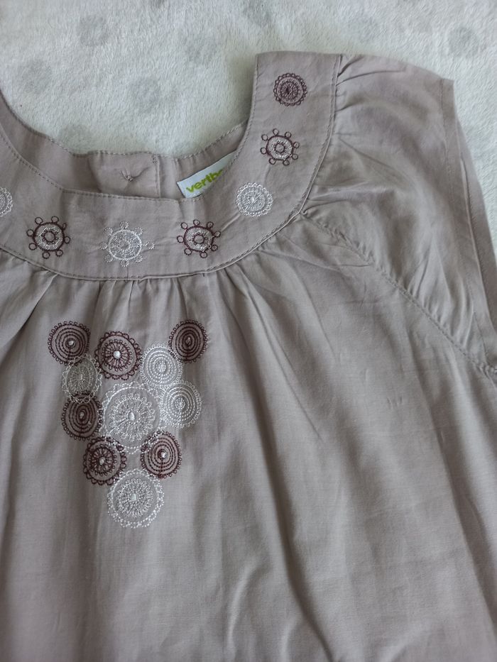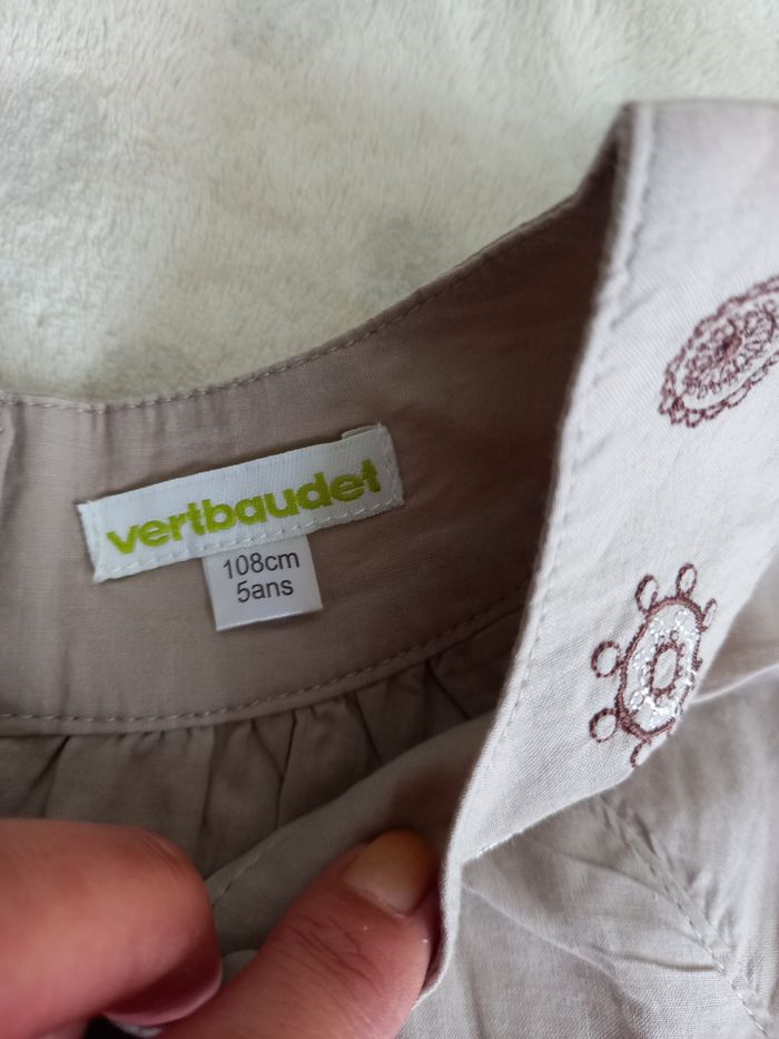 Blouse beige ou marron clair, taille 5 ans, pas de défaut, boutons au dos, petites broderies devant