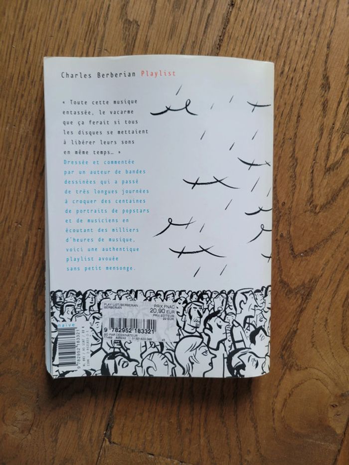 " Toute cette musique entassée, le vacarme que ça ferait si tous les disques se mettaient à libérer leurs sons en même temps... " Dressée et commentée par un auteur de bandes dessinées qui a passé de très longues journées à croquer des centaines de portraits de popstars et de musiciens en écoutant des milliers d'heures de musique, voici une authentique playlist avouée sans petit mensonge. livre en bon état #playlist #berberian