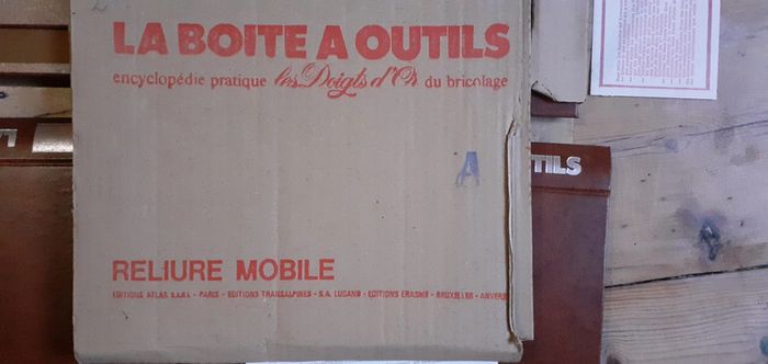 Dans leur emballage, les classeurs sont vides pour ranger les magazines. Encyclopédie pratique les doigts d'or du bricolage. Reliure mobile. Editions Atlas années 70 vintage Vous pourrez relier toute sorte de magazines ici. #vintage #atlas #boiteaoutils #reliuremobile
