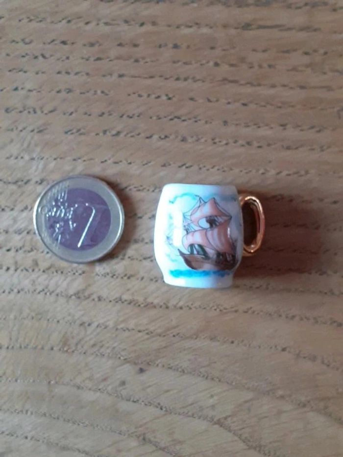Petite chope verre boisson pour maison de poupée ou Miniature pour vitrine, chope avec un voilier peint (pirates) Miniature vintage chope en faience #miniature #chope #voilier #pirate