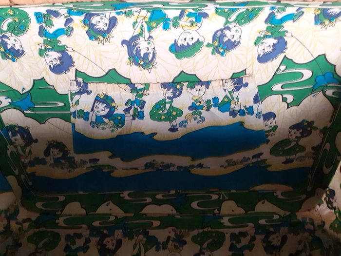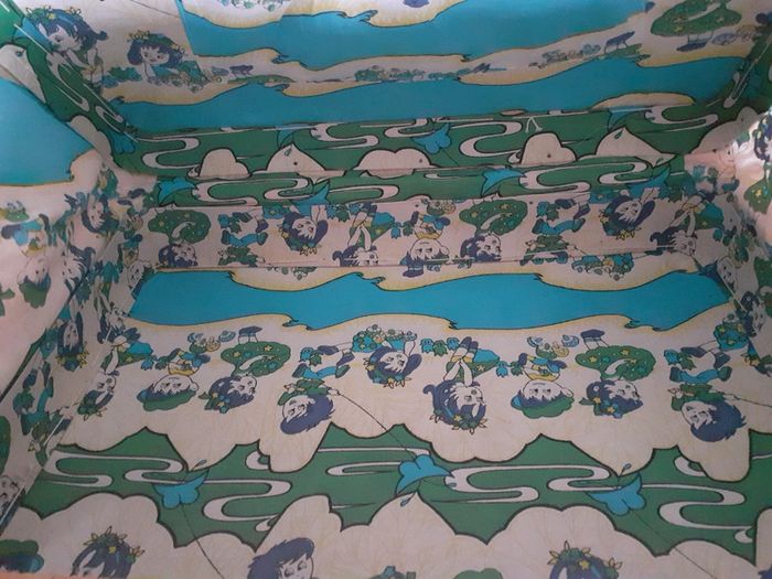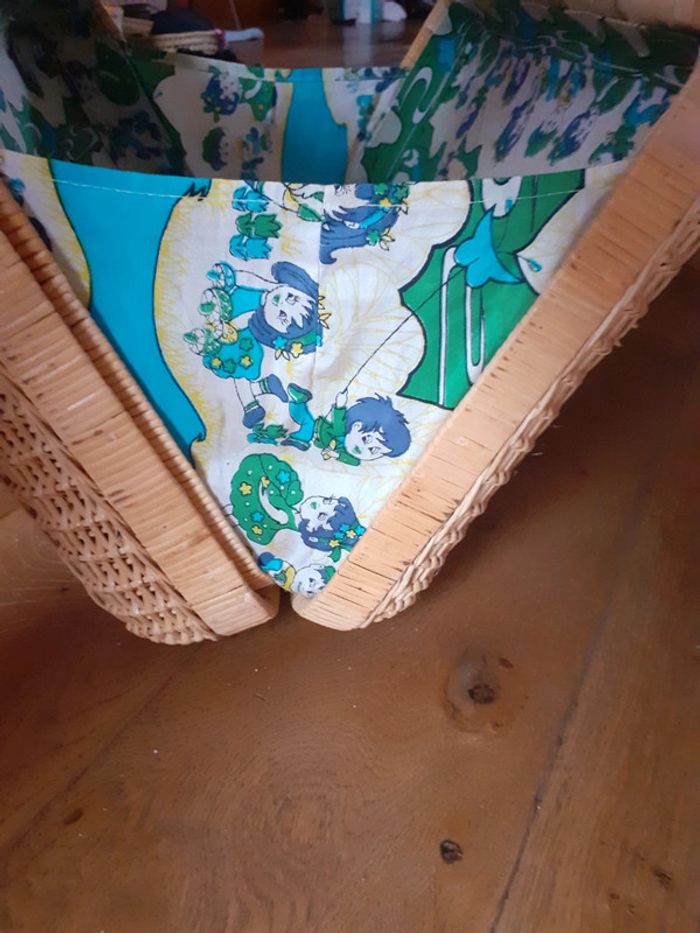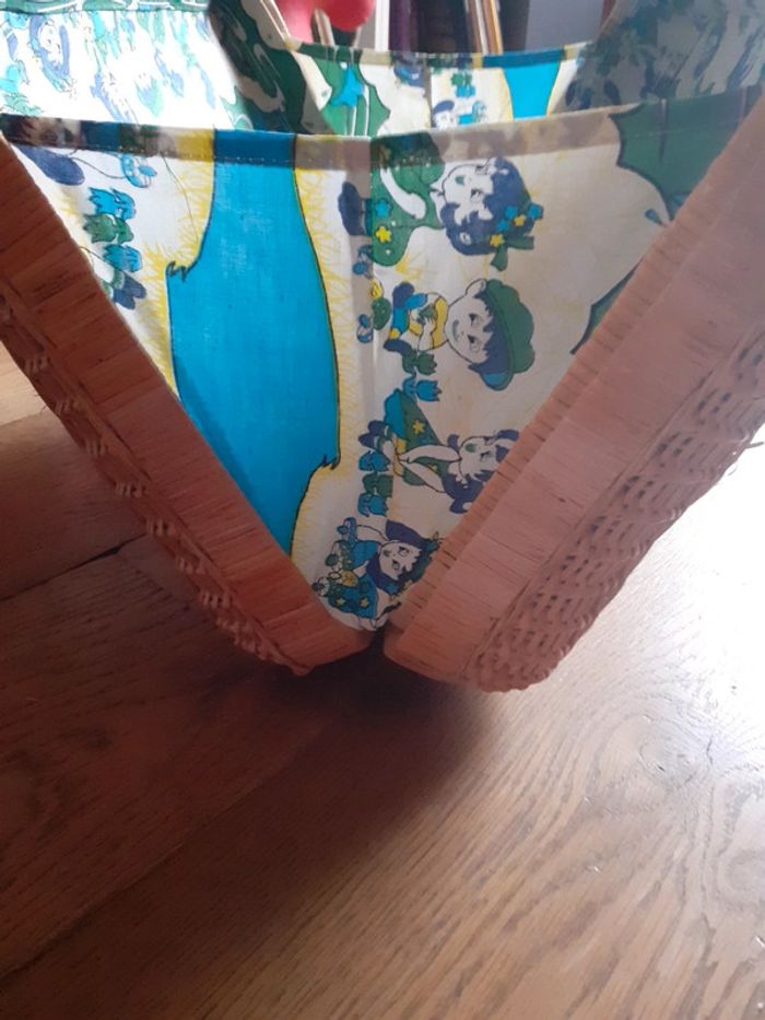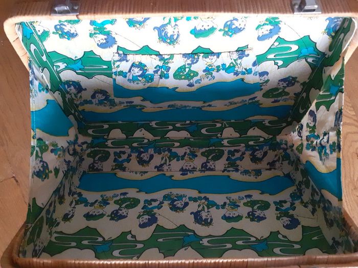 Entièrement doublée à l'intérieur en tissu avec des dessins d'enfants bleus et verts, avec une petite poche élastique.