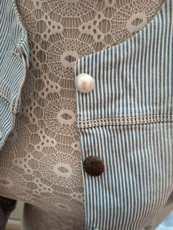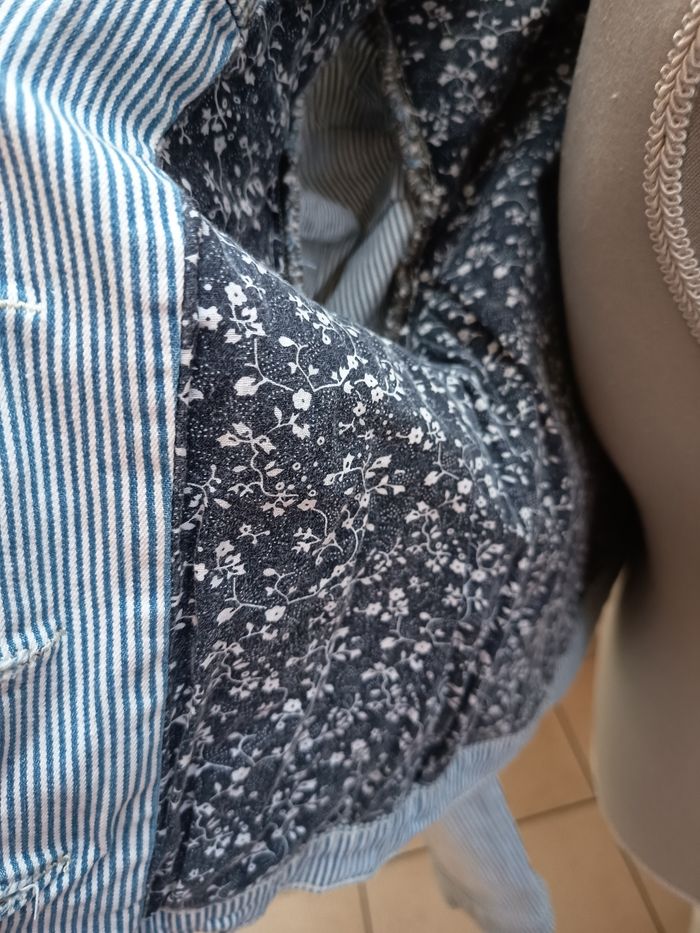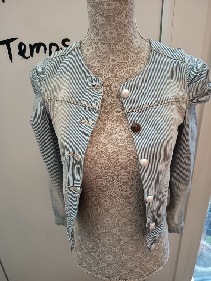 Aller à la vente aujourd'hui, notre superbe veste de la marque IKKS trop chou ( en excellent état) comme Mme Recycl'Art les aime avec de beaux détails : les manches bouffantes, la boutonnière en forme de grosses perles de culture, doublée dans tissu fleuri dans le noir.