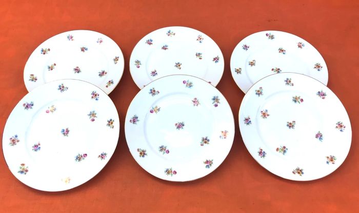 6 assiettes plates anciennes  Porcelaine  P.N France