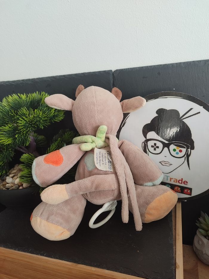Doudou peluche musicale Vache Marron Orange Little Garden nattou Bandana Vert