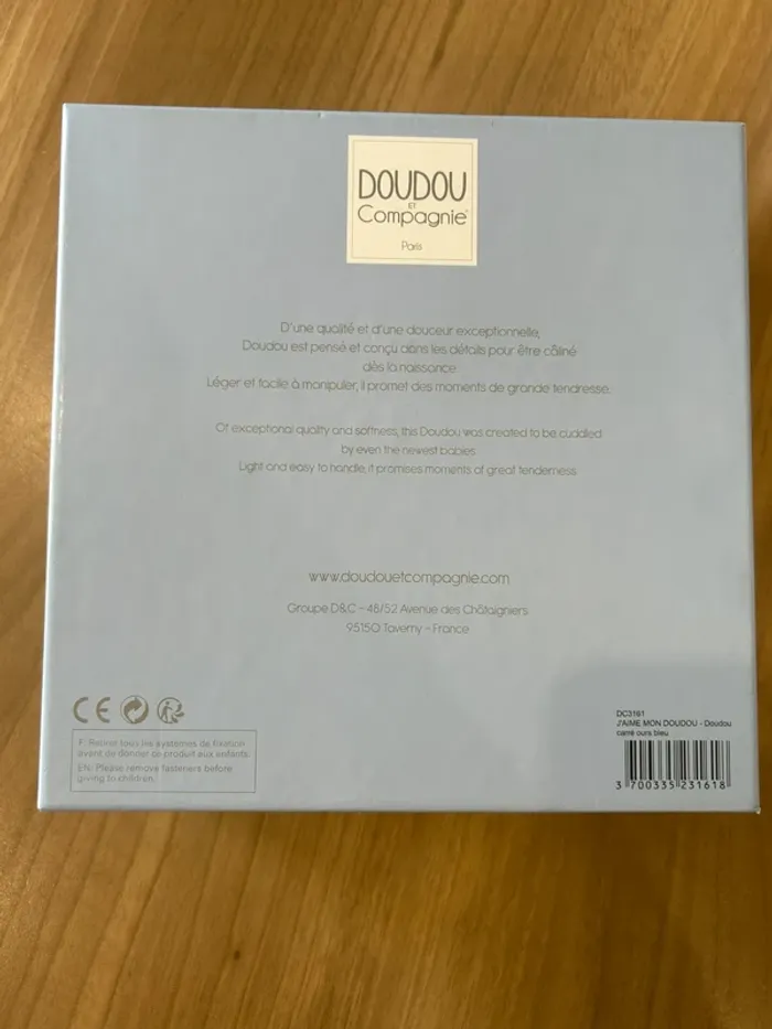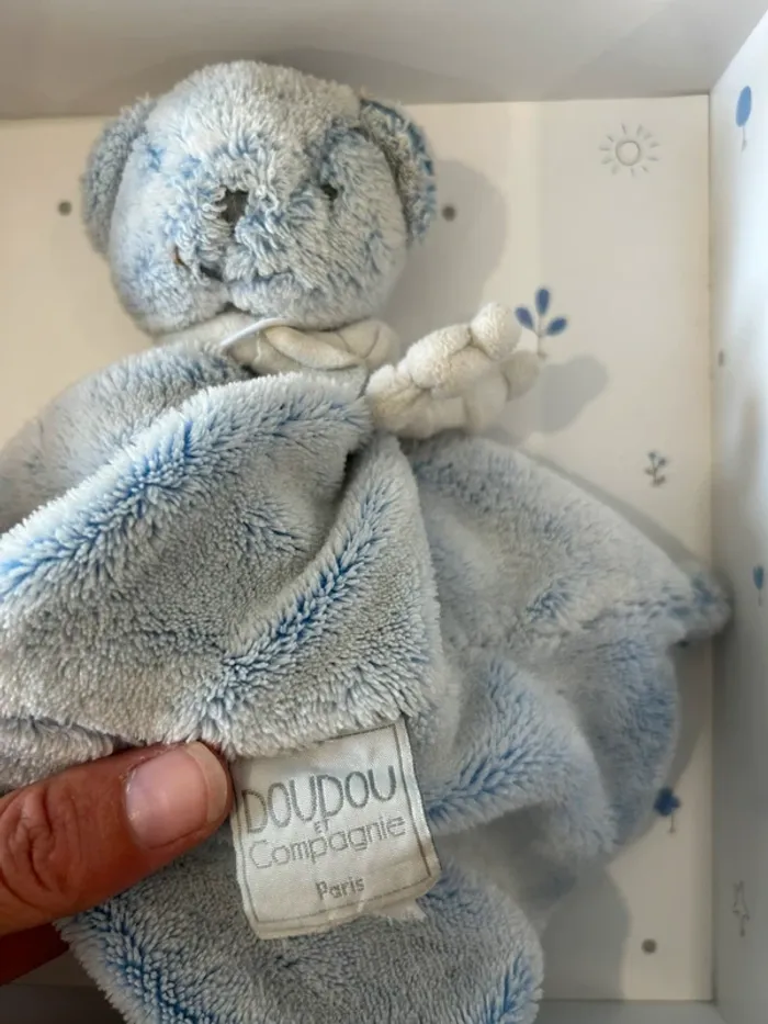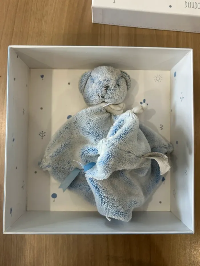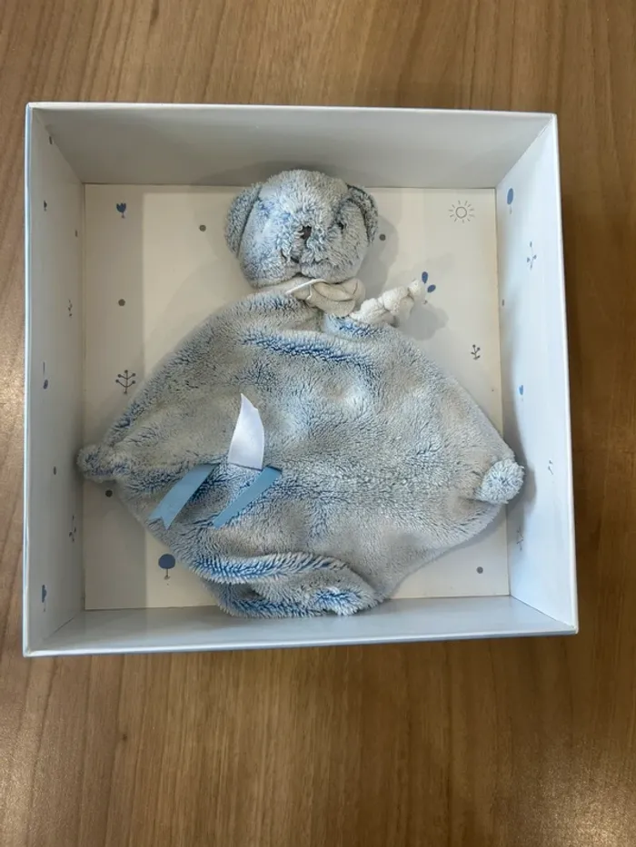 Doudou carré ours bleu Avec boîte d’origine