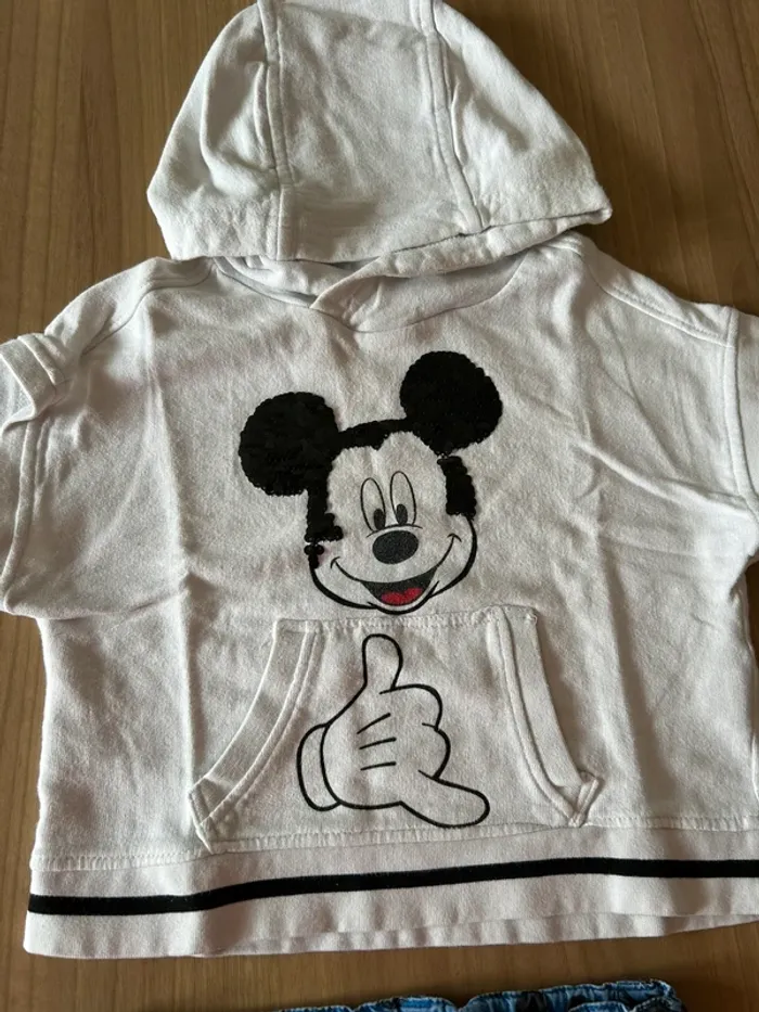Pull à capuche sans manches et short taille ajustable Très bon état Mickey mouse