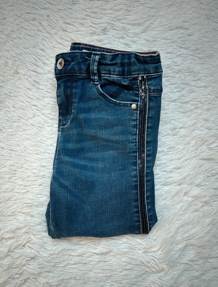 Très beau jeans de chez Okaïdi Taille réglable Sequins sur le côté Taille 10 ans Pour voir mes autres ventes en 10 ans cliquez sur #ella10ans