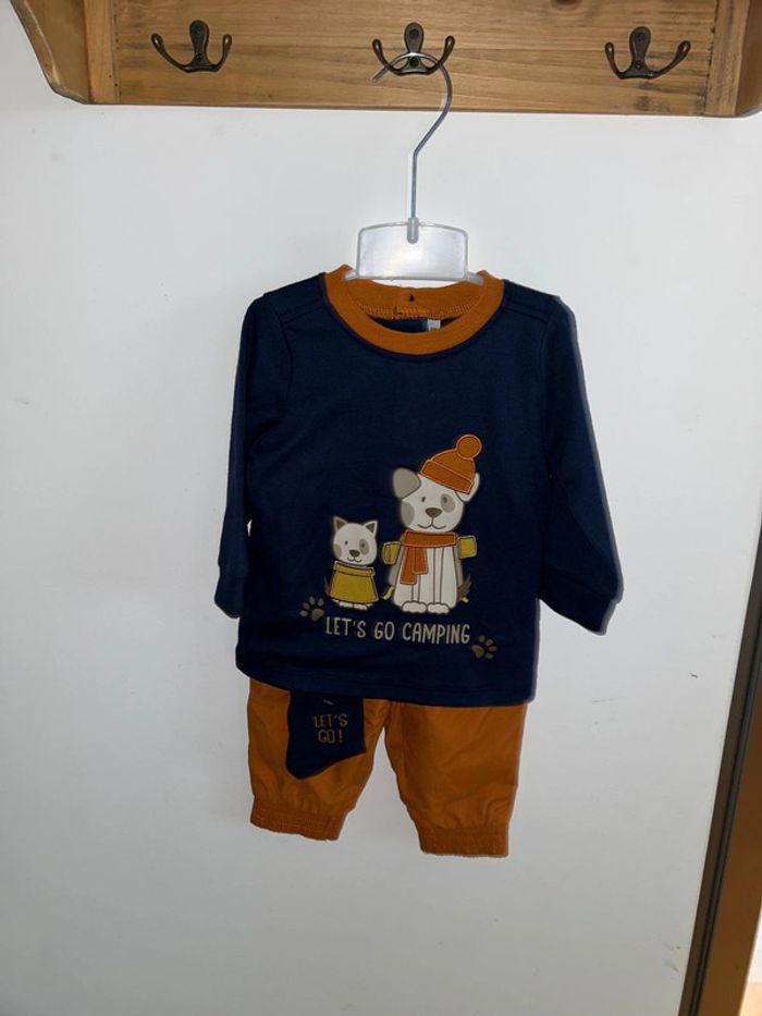 Ensemble 6 mois moutard bleu Lets go camping - photo numéro 1