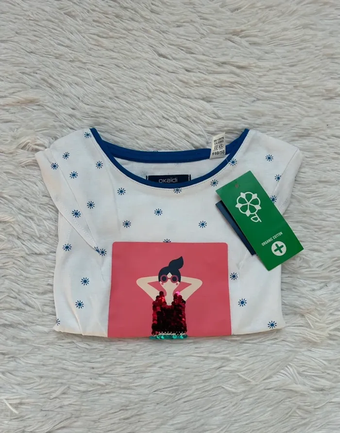 Adorable tee-shirt Okaïdi Neuf avec étiquette Taille 5 ans Pour voir mes autres ventes en 5 ans cliquez sur #tessa5ans #été #sequins