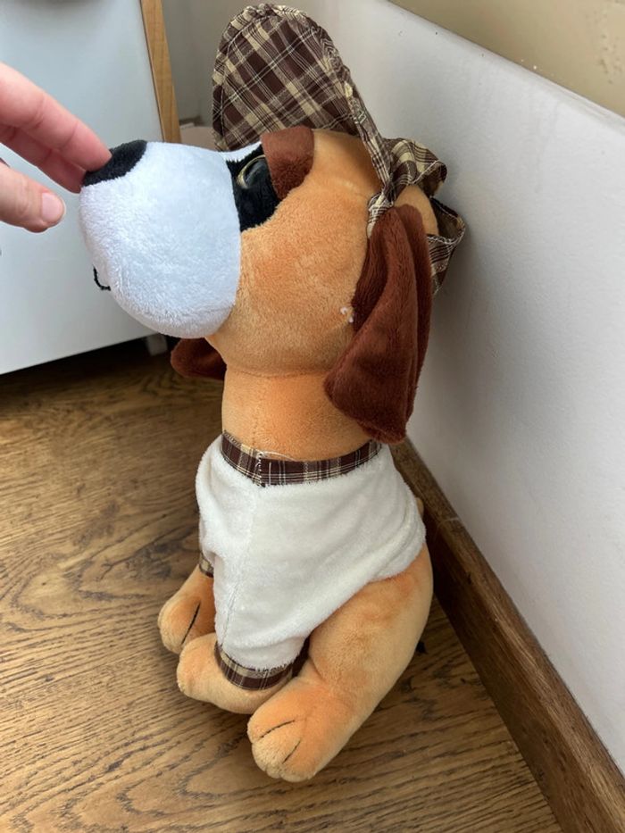 Grand doudou peluche chien avec casquette - photo numéro 1