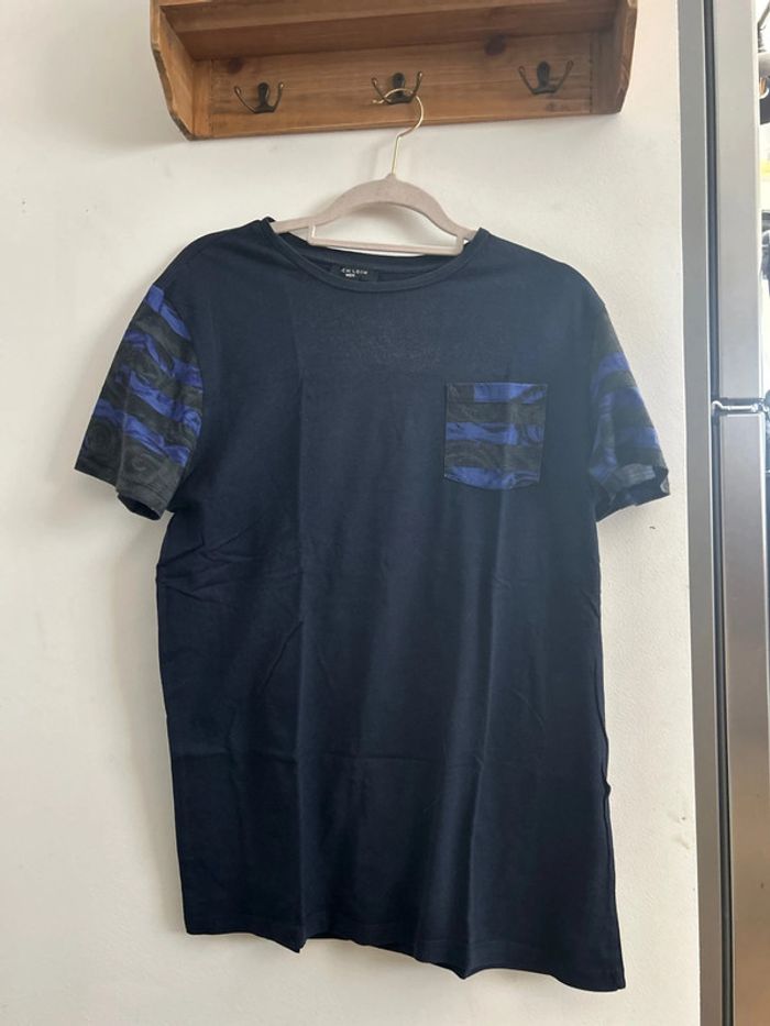 Tee shirt New look taille M bleu rayé fleur - photo numéro 1