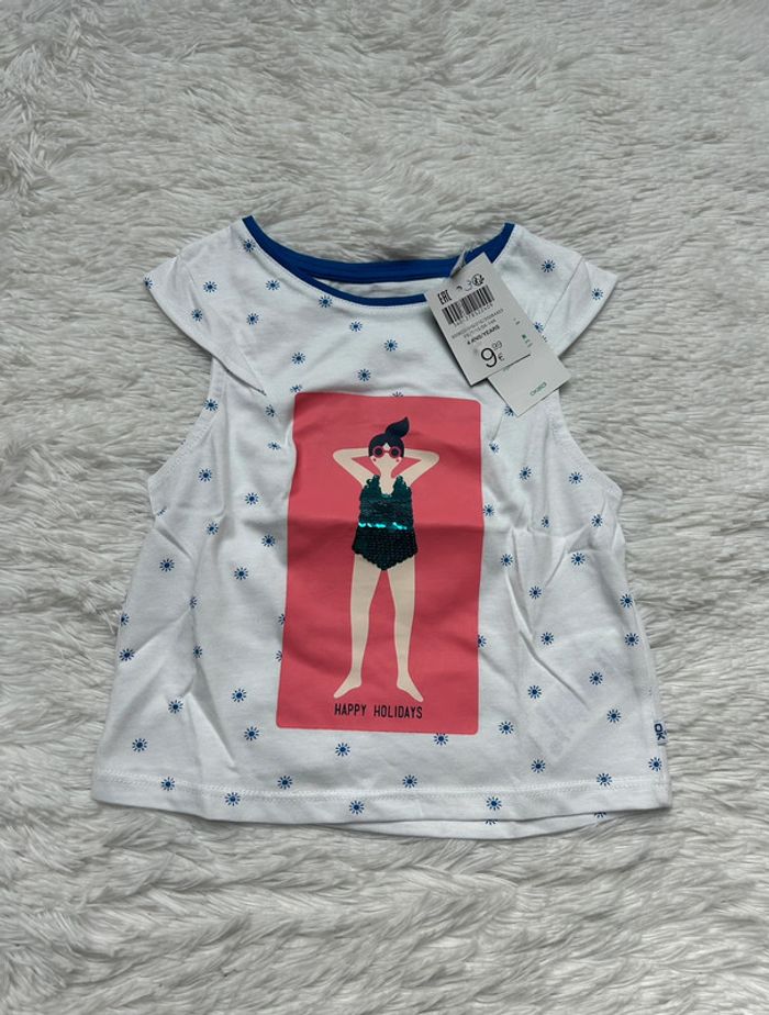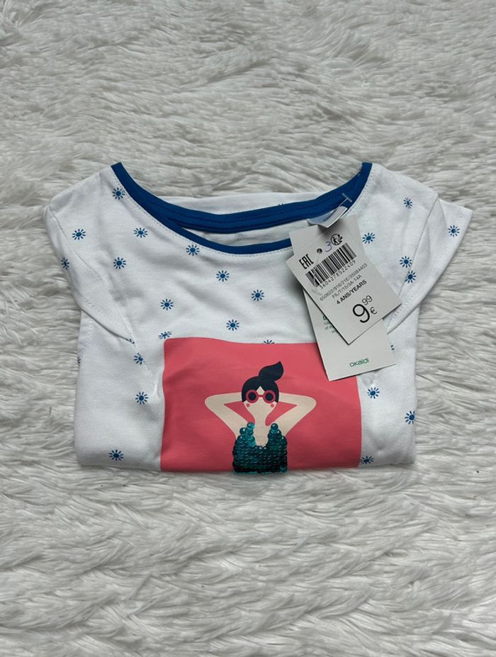 Adorable tee-shirts Okaïdi Neuf avec étiquette Taille 4 ans Valeur magasin 9€99 Pour voir mes autres ventes en 4 ans cliquez sur #tessa4ans #cotonbio #sequins