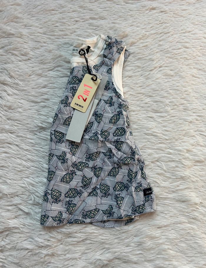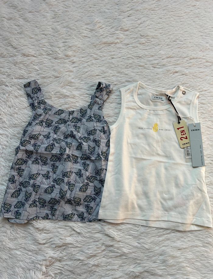 Adorable débardeur / haut 2 en 1 IKKS Neuf avec étiquette Débardeur et blouse, peuvent être portés ensemble ou séparément Valeur magasin 38€ Taille 2 ans Pour voir mes autres ventes en 2 ans cliquez sur #tessa2ans #été