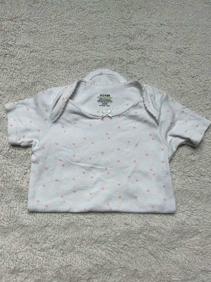 Adorable bodies de chez Kiabi Manches courtes Une petite marque, sinon en très bon état Taille 36 mois Pour voir mes autres ventes en 3 ans cliquez sur #tessa3ans #été