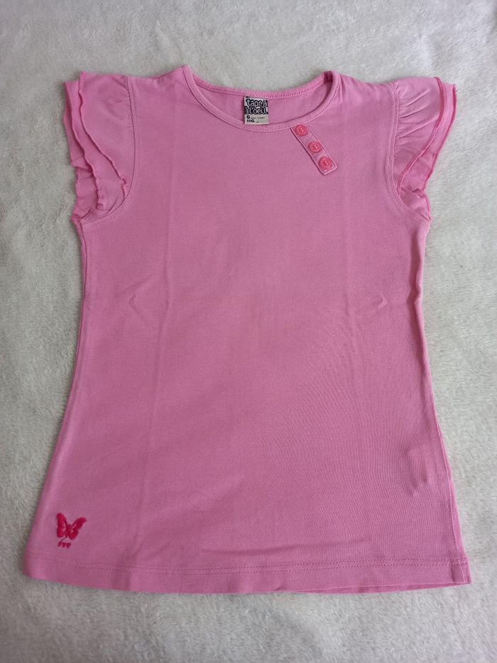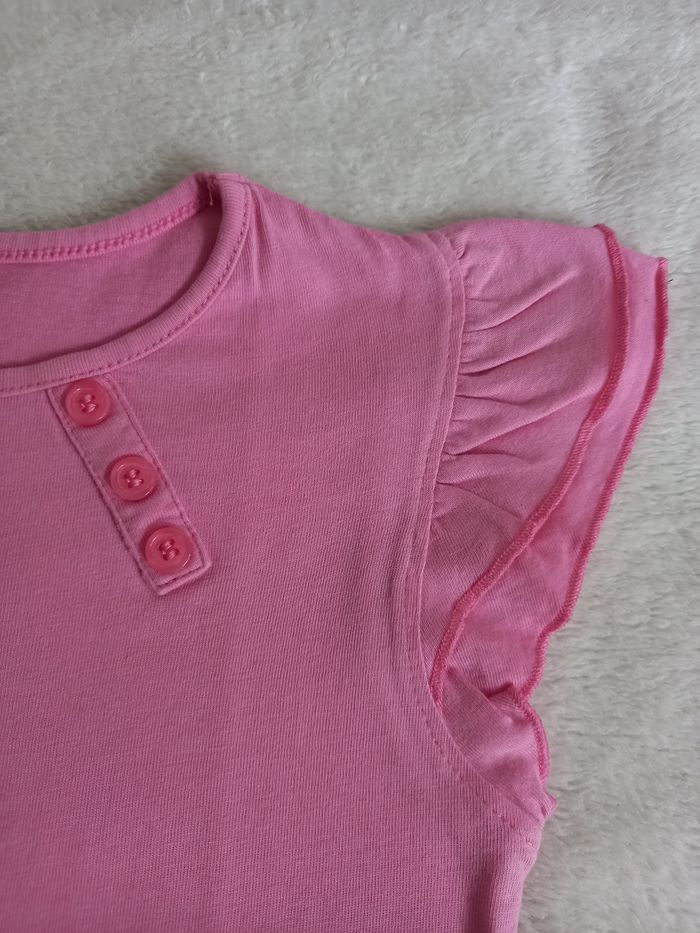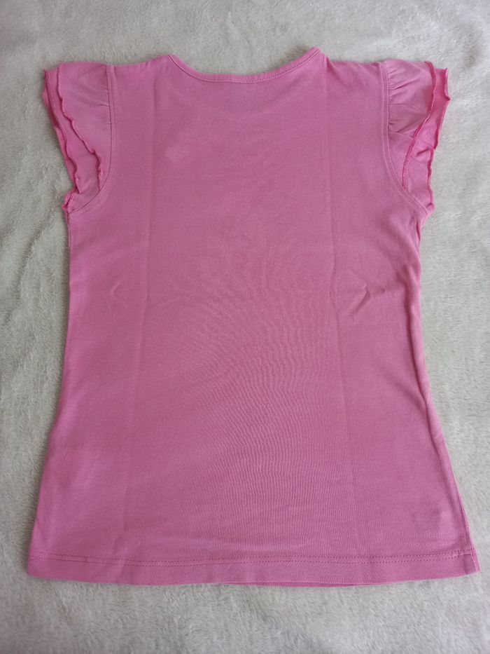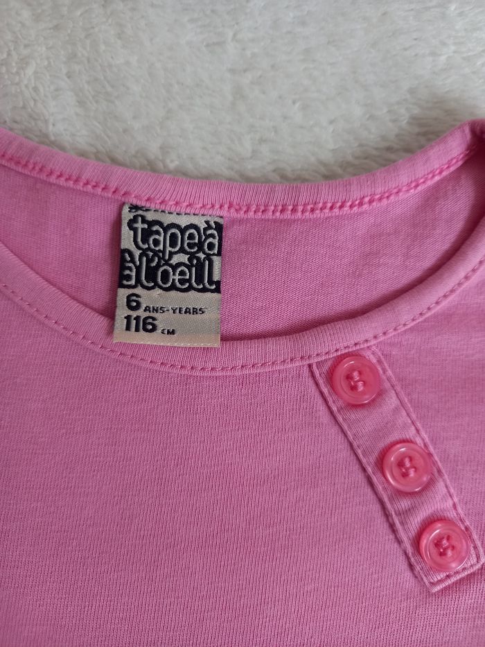 Excellent état, t shirt rose manches courtes en petits volants, petits boutons au col pour la "déco" , taille 6 ans