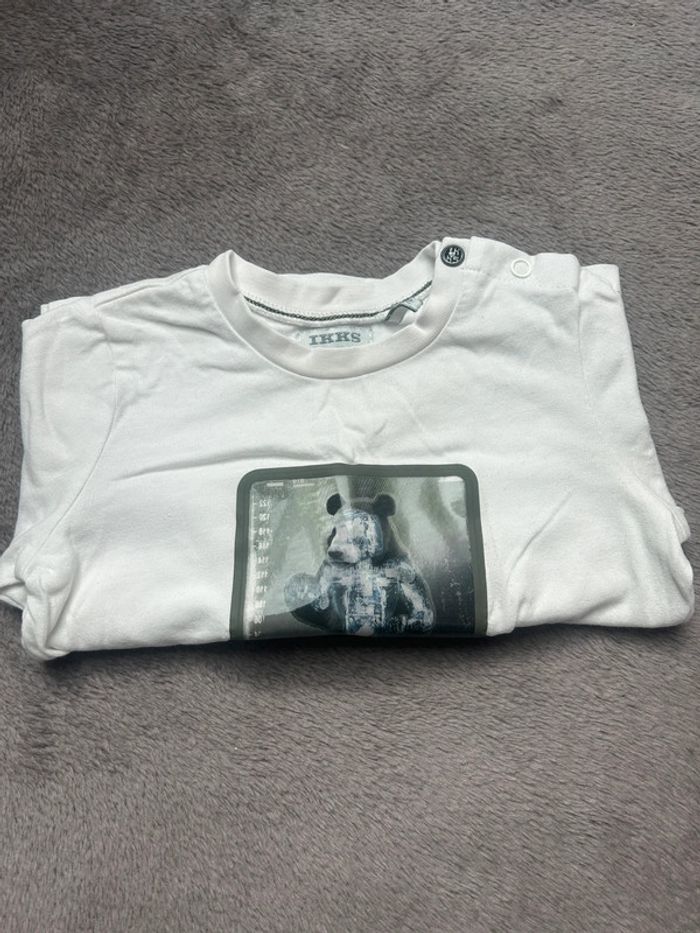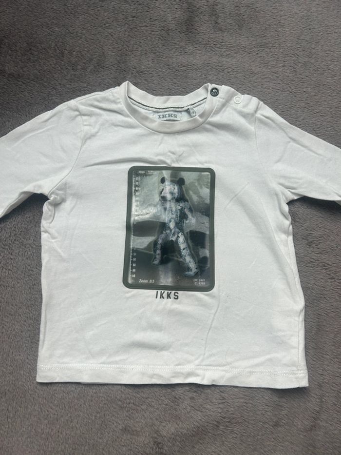 Très beau haut / tee-shirts manches longues de chez IKKS Thème ours Une petit marque à l’arrière qui se voit à peine, sinon en très bon état Taille 12 mois Pour voir mes autres ventes en 12 mois cliquez sur #malone1an