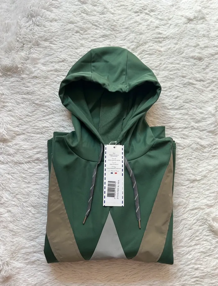Très beau sweat Cycladine Neuf avec étiquette Taille XL Coupe vent, deperlant, détails réfléchissants avant et arrière, poches sur les côtés, imperméable : colonne d’eau 10 000mm Made in France Valeur magasin 155€ #cycladine #cycliste #cyclisme #randonnée #marche #madeinfrance #créationfrançaise #chloe_sports