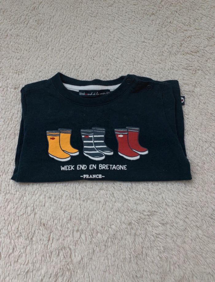 Tee-shirts été week-end à la mer En très bon état Taille 12 mois Motif bottes de pluie Pour voir mes autres ventes en 12 mois cliquez sur #malone1an
