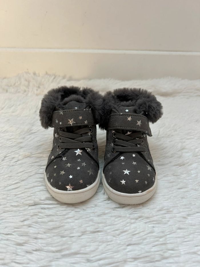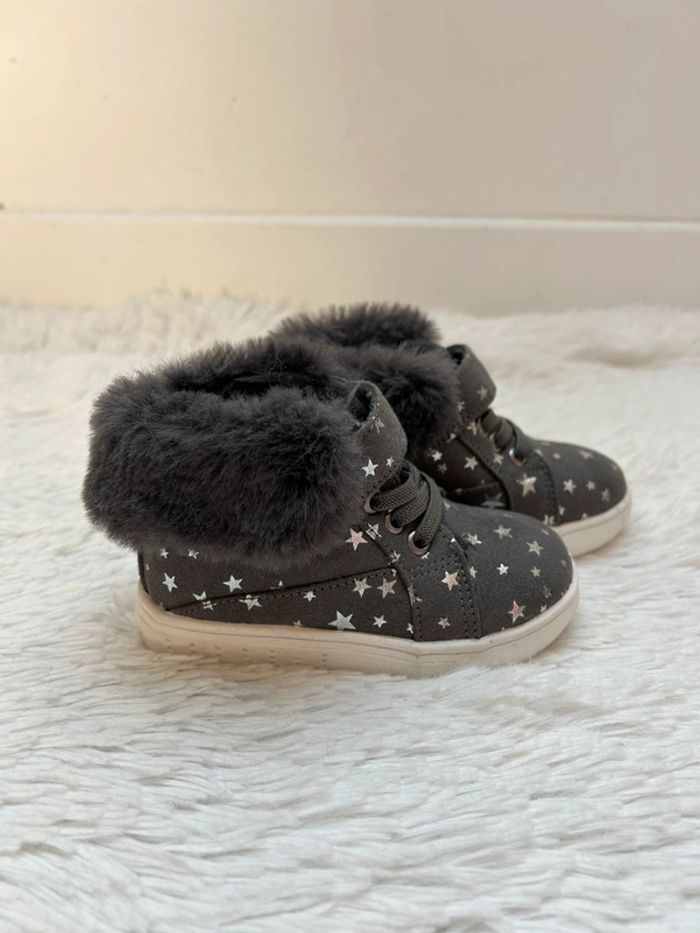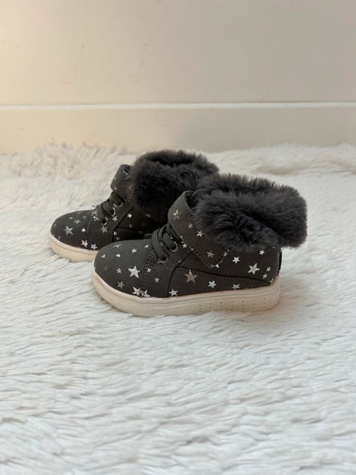 Adorables chaussures / bottines fourrés Facile à enfiler, scratch et lacets élastiques Neuves, jamais portées Achetées 35€ Pointure 21 Pour voir mes autres ventes en 18 mois cliquez sur #tessa18mois #chaussureenfantchloe #patetripaton