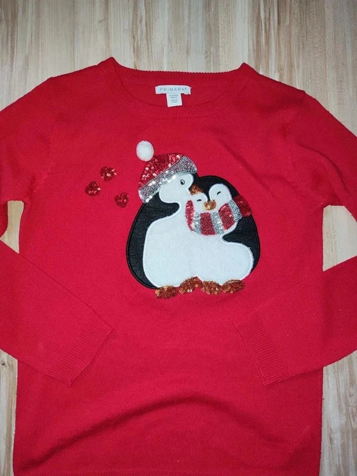 Pull noël avec pingouins Primark 11 / 12 ans rouge - photo numéro 1