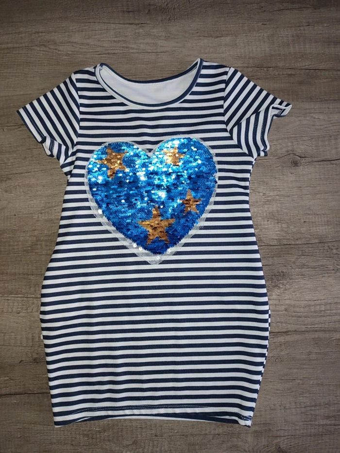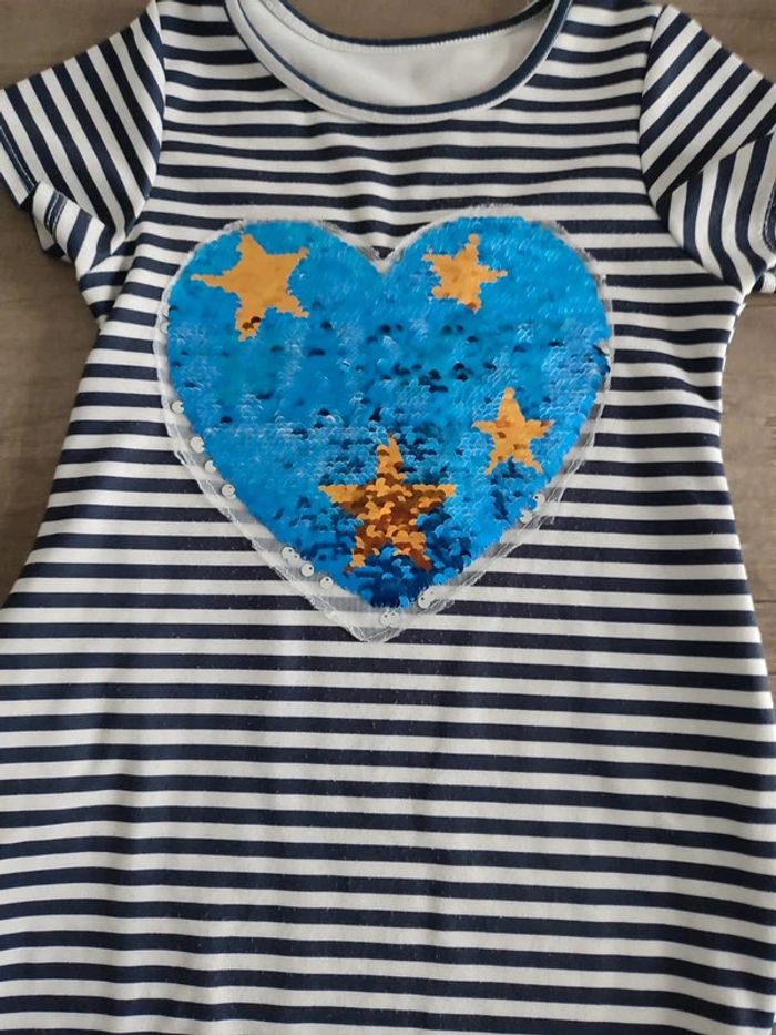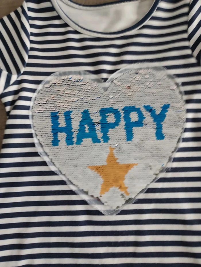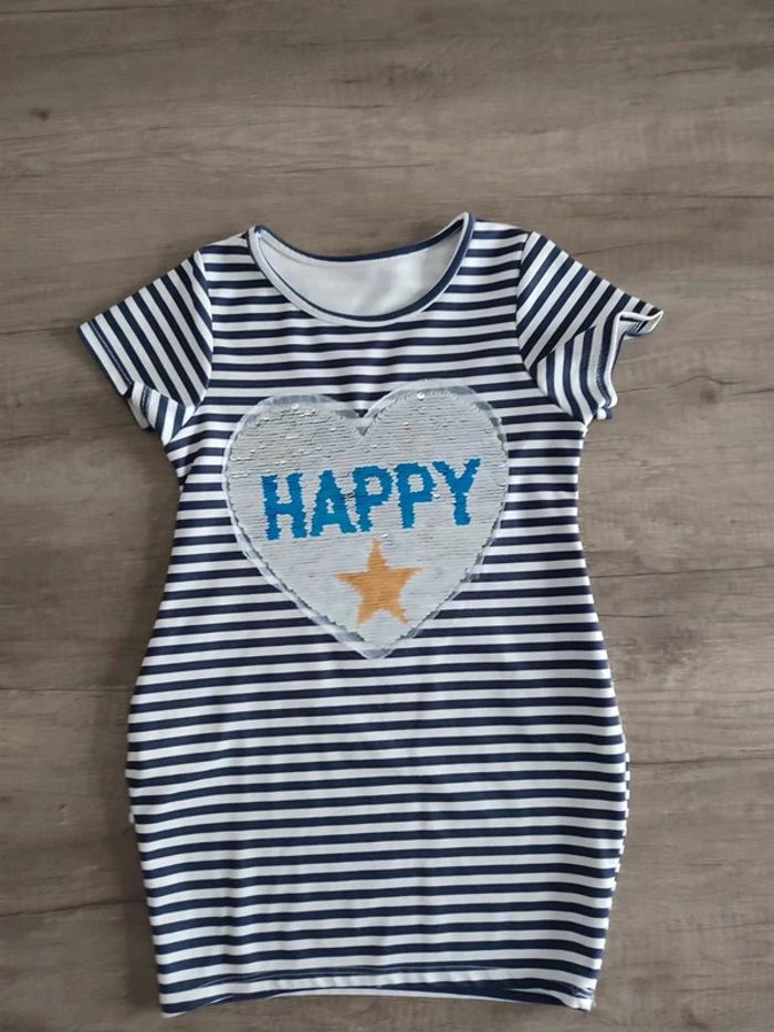 Robe avec sequins " Happy " 8 ans à rayures - photo numéro 1