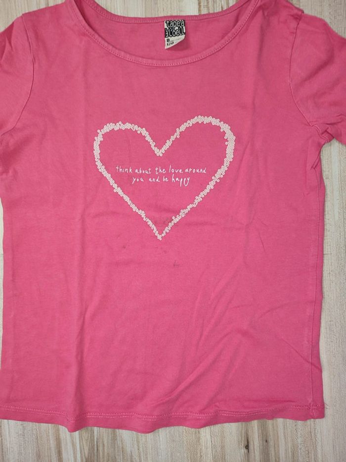 T Shirt 8 ans rose Tape à l'oeil avec un coeur - photo numéro 1