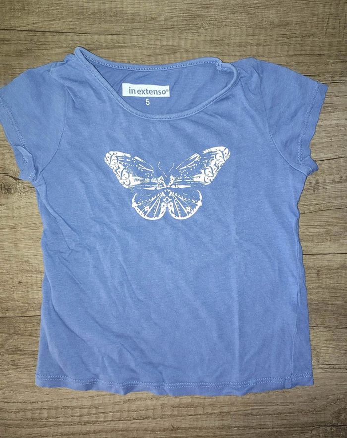 T shirt bleu 5 ans In Extenso avec un papillon